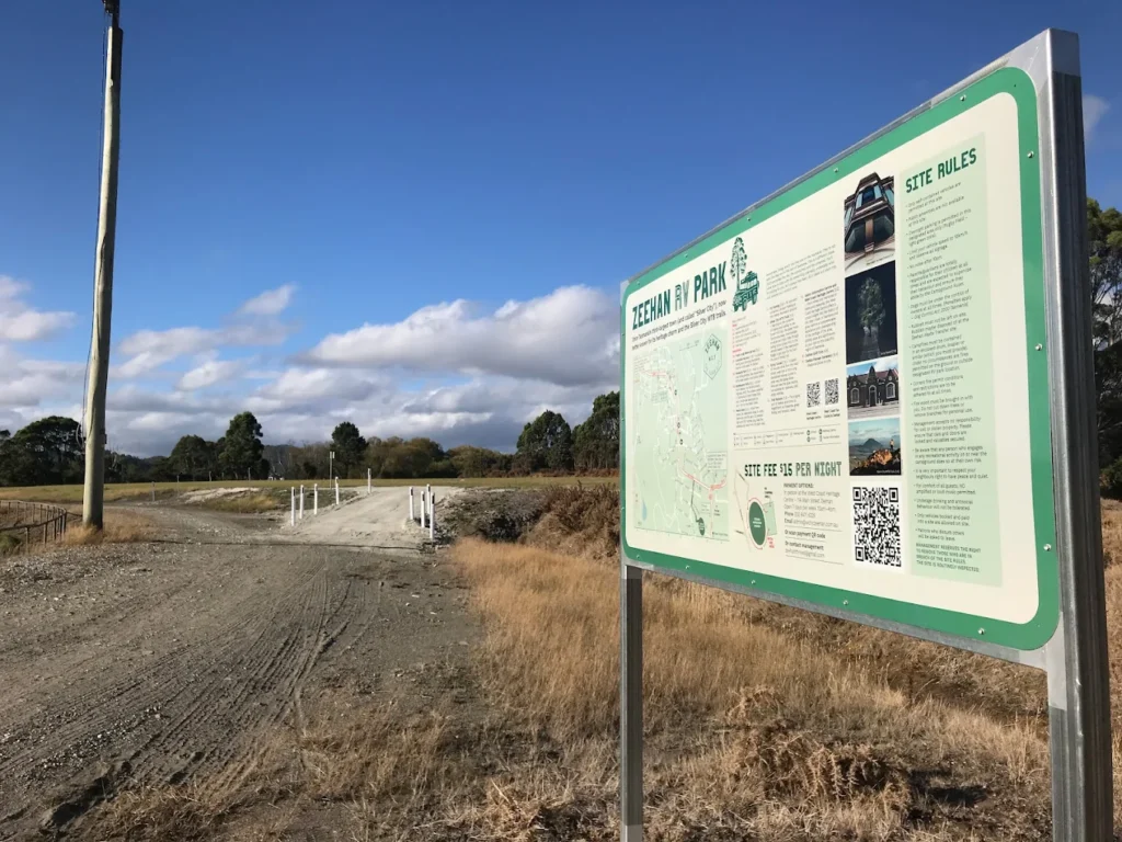 Sites are booked in person at the West Coast Heritage Centre in Main Street, Zeehan or by scanning the QR code on site at the Zeehan RV Park.